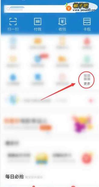 2进入到支付宝主页面后,定位页面中部【更多】选项,进入到详细页面。