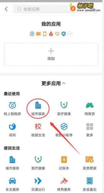 3进入到支付宝更多应用的详细页面后,进入【城市服务】应用
