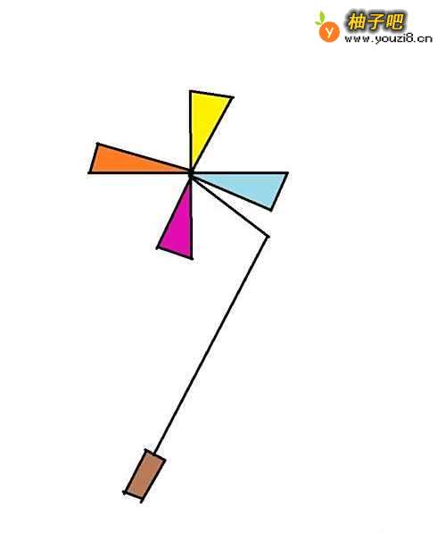 6最后涂上颜色,这样简单好看的风车就画好了。