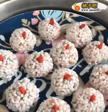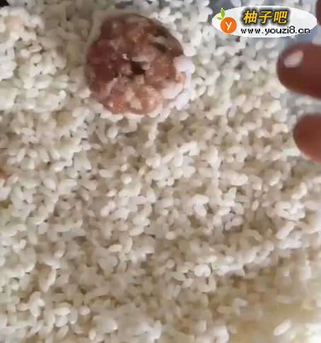 4把调好的肉馅揉成团子,滚上一层糯米I;