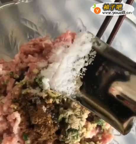 2加入葱姜,胡椒粉,五香粉,料酒,酱油,香油,盐,搅拌均匀;