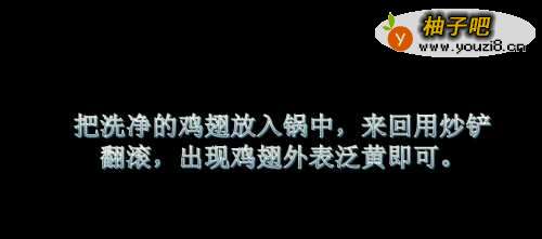 3把洗净的鸡翅放入锅中,来回用炒铲翻滚,出现鸡翅外表泛黄即可。
