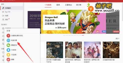6歌曲也能私信发送,玩家选择一首歌曲,在歌曲播放的同时右边有个分享按钮,玩家点击分享按钮之后,会出现很多的分享程序,玩家选择第二个私信分享就跟分享给私聊的好友人了。
