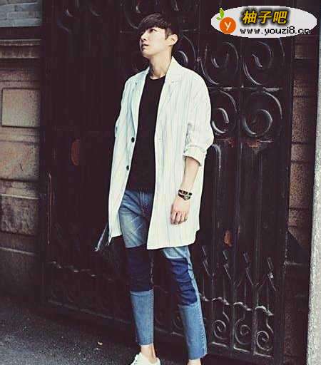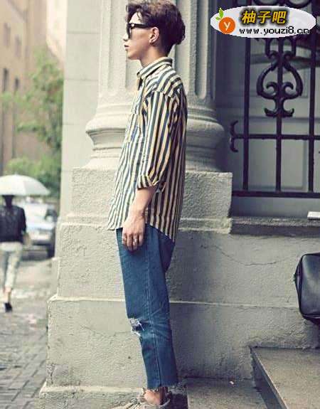 2男士条纹衬衫应该是男士秋季必备的单品了,韩版的修身竖条纹的男士衬衫,搭配破洞牛仔裤,绝对是型男在秋季的穿衣经典。