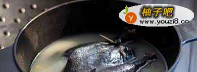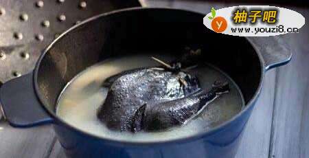 6加水没过鸡,大火烧开,撇去浮沫后小火炖煮,直至汤汁乳白,鸡肉软烂;