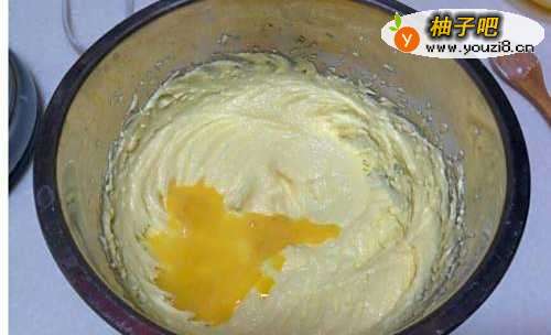 33、室温鸡蛋液分次少量地加入黄油中,每次需搅打至蛋、油融合后,再加入第二次。再分;两次加入鲜奶,搅打至呈光滑细致的乳膏状即可。