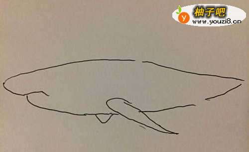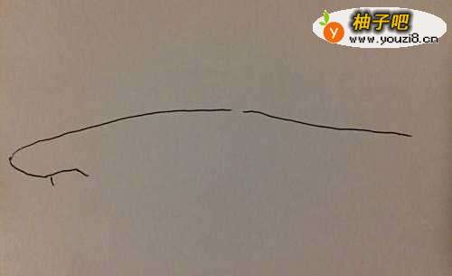准备好画画的笔和纸,先画出一条长长的弧线,是柠檬鲨的背部。