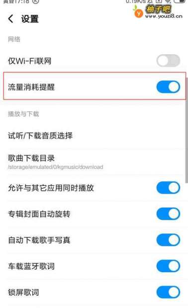 4在设置页面中,点击流量消耗提醒后面的开关。