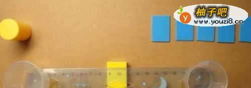 2接下来取出一个橘色的长方体,把直尺摆放在上面,要把直尺的中线摆放在长方体中间,这样就容易保持平衡,如下图所示。
