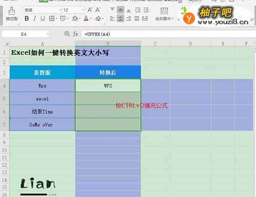 1、首先,打开WPS Office Excel数据表格;2、选择单元格【B4】,点击【公式】—【文本】;3、在“文本”函数列表中,选择函数【UPPER】;4、在“函数参数”对话框,输入字符串【A4】,点击【确定】;5、选择单元格【B4:B7】,按【CTRL+D】填充公式即可。