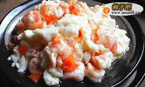 3锅内放少许色拉油,放入虾仁炒一分钟至熟盛出备用。
