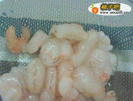 虾仁清洗干净后控干水份,加入少许盐腌10分钟至入味。