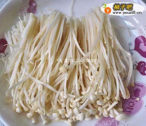 2将金珍菇根部有木渣子的切掉一点去,洗干净备用。