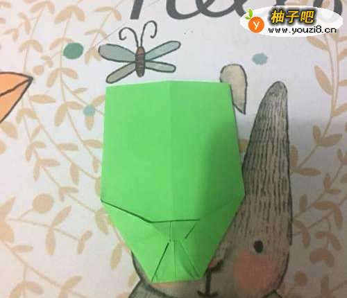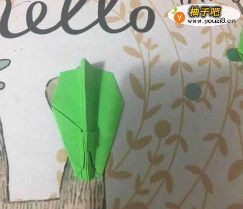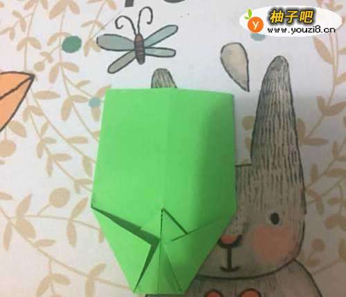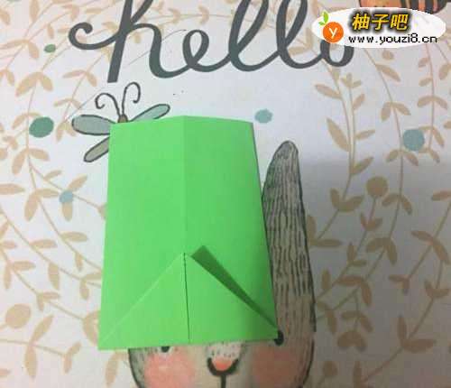 首先将一个长方形折纸沿中线对折,如下图所示。