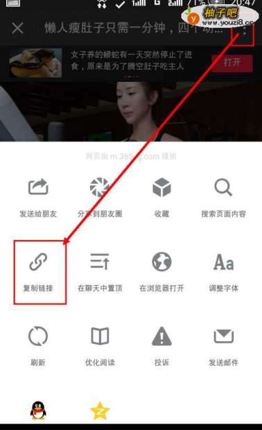 2进入链接页面之后,点击右上角的菜单图标(三个点),然后点击“复制链接”选项。