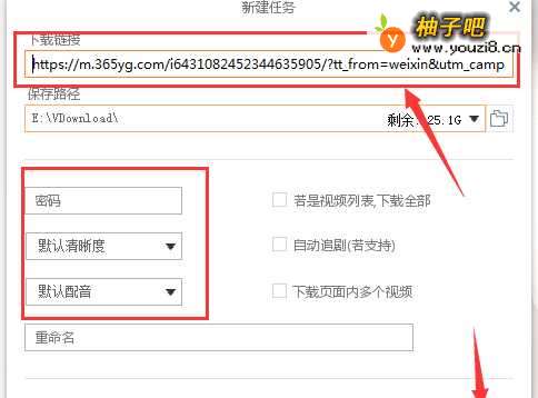 7将第四步复制的网址粘贴到相应的位置,然后设置选项,点击“立即下载”即可开始下载。