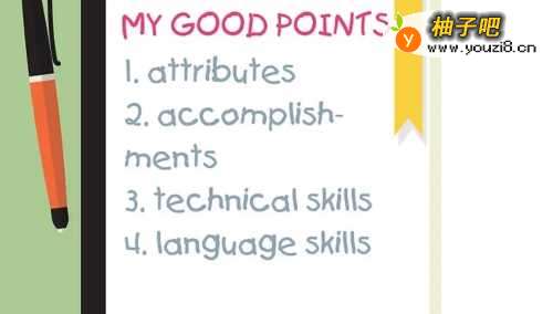 当被要求谈谈自己的时候着重突出2-3点。再加上一个例子证明你的特质在特定情况下是很有利的