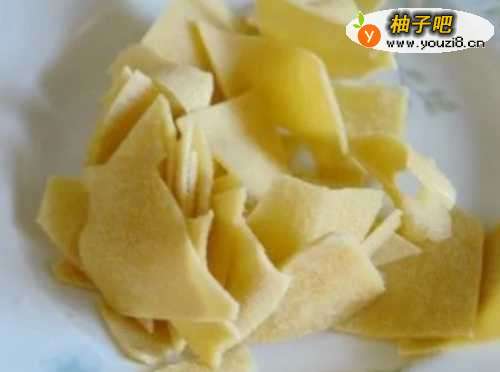 3干豆腐切成菱形片 刚好与白菜片搭配