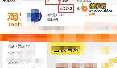 2进入淘宝之后,我们点击账号后面的下拉箭头,弹出的界面,我们点击账号管理;