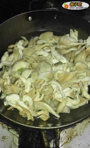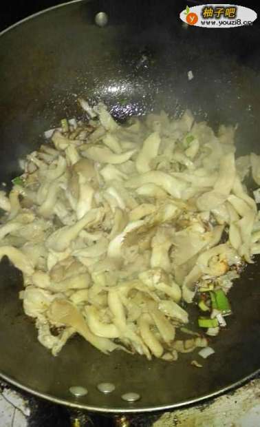 5锅放油够罩,加葱炒香,加鲜蘑翻炒!