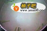 4锅里做10倍的水(米与水的比例是1:10或1:12)烧开后放入泡好的大米,姜片,葱白和少许油