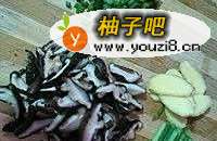 3把泡好的香菇切片,姜切片,葱白切条,葱叶切末