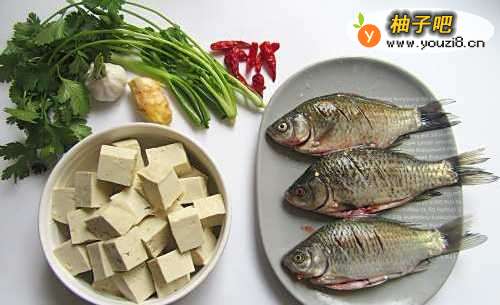 准备好所需食材、鲫鱼清洗处理干净,豆腐划成小方块