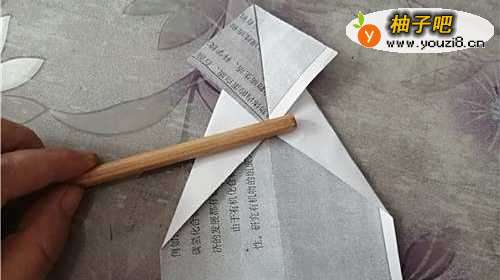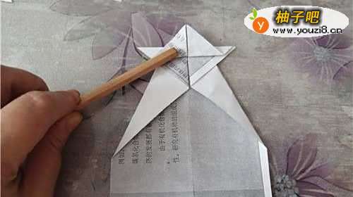 4我们再把刚才折下来的角,向上折,如下图的样子。