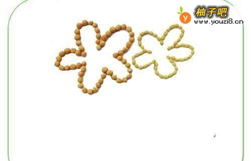 2在白纸上,用种子摆出花朵的形状,如下图所示。