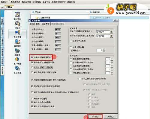 4在“管理”参数界面,勾选【结账与总账期间同步】,点击【保存】即可。