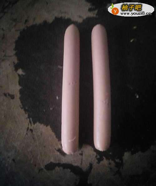 火腿两根,从中间切成两半,再切成段。