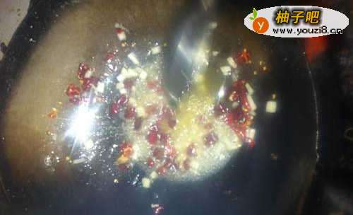 5锅放油,加辣椒,豆瓣酱,肉末炒香。