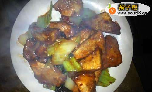 6加一点水,加豆腐,翻炒收汁,出锅。