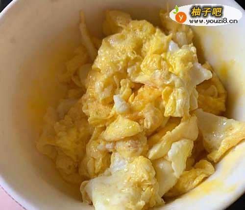 7将鸡蛋倒回锅里,再加少量食盐和鸡精,翻炒均匀,即可出锅。