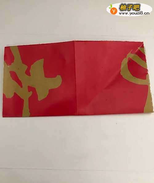 第一步 首先取一张长X宽都是16厘米的正方形花色彩纸彩纸 把它从下向上对边折叠 然后再取开 竖起折痕 再次从下向上对边折叠