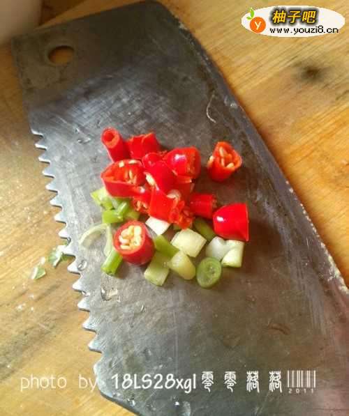 3小葱只留葱白部分,切成葱段,小米辣切圈;