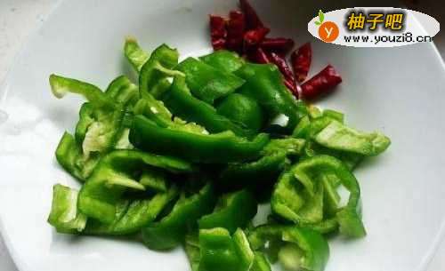 3青辣椒切丝,红辣椒切碎