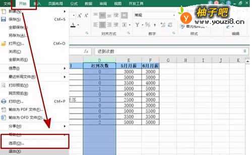 隐藏零值:首先选中需要隐藏零值的数据区域,在菜单栏中选择【文件】按钮,然后选择【选项】,具体操作如图所示: