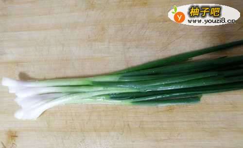 2葱洗干净,切段放进盘里备用,最好把葱头部和葱段分开,备用