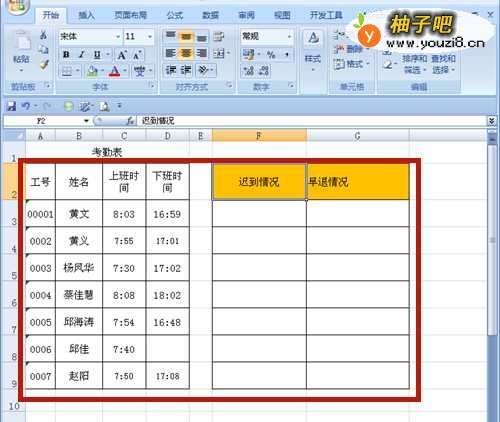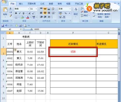 7其他员工的迟到、早退情况便醒目地标注出来啦!