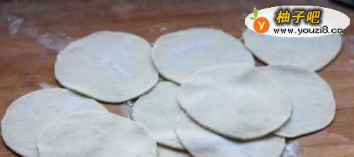 6将发酵好的面团制作成面皮备用,面皮尽量做到里边厚外圈薄,防止破损。