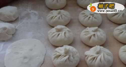 7将馅料放入面皮,制作成包子坯。