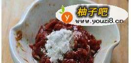在牛肉里放蠔油、蒸鱼豉油、适量盐、姜汁、黄酒。
