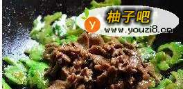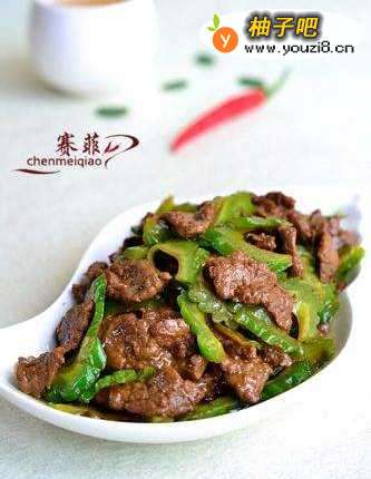 投入牛肉,短炒至与苦瓜味相融,即成。