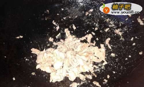5锅中热油,油热后将里脊肉倒入锅中将肉片炒至变色倒出备用。
