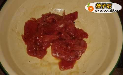 猪里脊肉切片,用适量酱油、料酒、咸盐腌制30分钟。