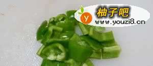4青椒切成小块。