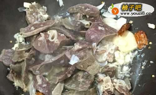 4、再放猪肺炒熟;