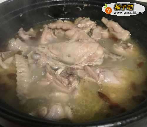 3准备一口砂锅,将炒好的鸡块放入砂锅,加足量水,开大火,烧开,转小火慢炖一小时