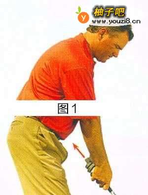 头抬高 如果瞄球时你的下巴贴在胸部,你就难以把转肩动作做到位。为解决这个问题,可以在瞄球时假想下巴和胸部之间夹着一个鸡蛋。下巴抬高,把蛋夹牢。如果你使下巴靠近胸部,就会把蛋夹碎。